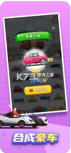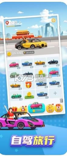 购买各种车辆,然后不断合成升级,解锁更多高级的豪车,然后开始自驾旅;