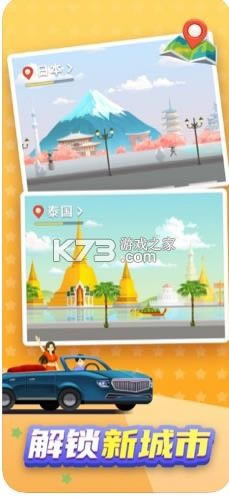 支持解锁新城市以冒险,在不同场景之间切换以挑战并享受这段非常舒适的旅程;
