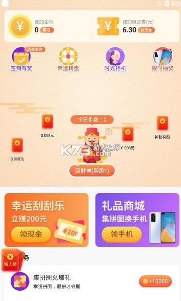《财神来了》这是一款可以领取红包的一款走路赚钱的软件,里面的任务形式也是非常的多的,还将可以进行抽奖或者是领取华为手机,有着幸运转盘、刮刮卡、猜成语等多种娱乐赚钱方式,让你在空闲时候可以轻松的赚钱。