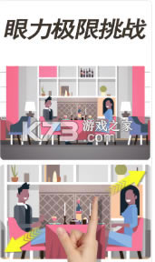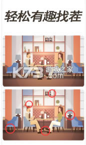 这是一个经典的找茬游戏,唯美精致的图中,看似一样但又多处不同,发挥你的侦探细胞找到不同,通过一个个难关。