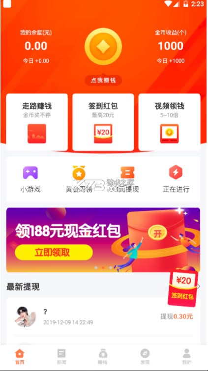 同时还可以进行一元的提现