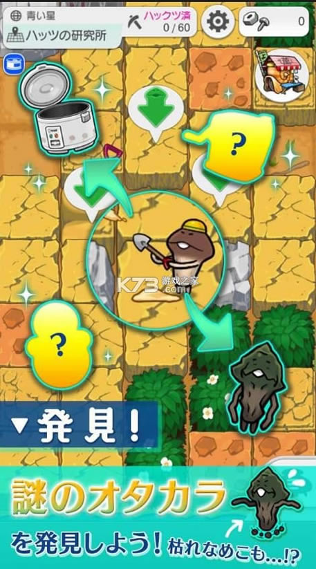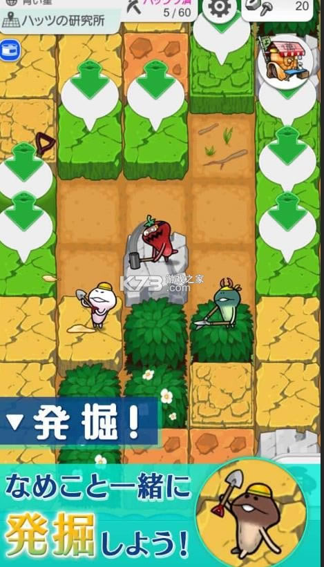 《菇菇发掘套件(なめこ発掘キット)》不断的来开启挖掘的游戏,将会有各种各样的技能加入,做最擅长的工作,挖掘出色还会有同伴们的加入哟。