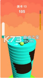 音碎块块是一款超有趣且令人上瘾的一键式休闲游戏,在音乐的节奏下,按住屏幕,让球向下移动而不碰触黑色的障碍物,尽可能的打碎其他颜色的块,让球从螺旋堆落下。