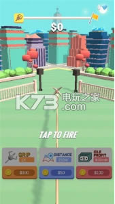 1、每一次的出击都会勾住很多建筑物,然后控制左右方向尽可能多的将房屋摧毁掉,这样就能获得更多的金币和钻石,然后强化升级变得更加厉害。