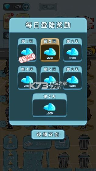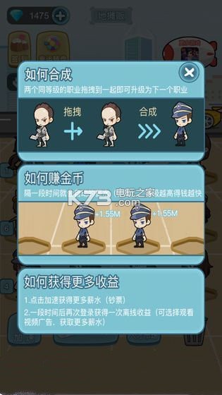 3、每隔一段时间会自动获得金币,人物角色的等级越高,获得的金币就会越多,可以购买更多的道具。