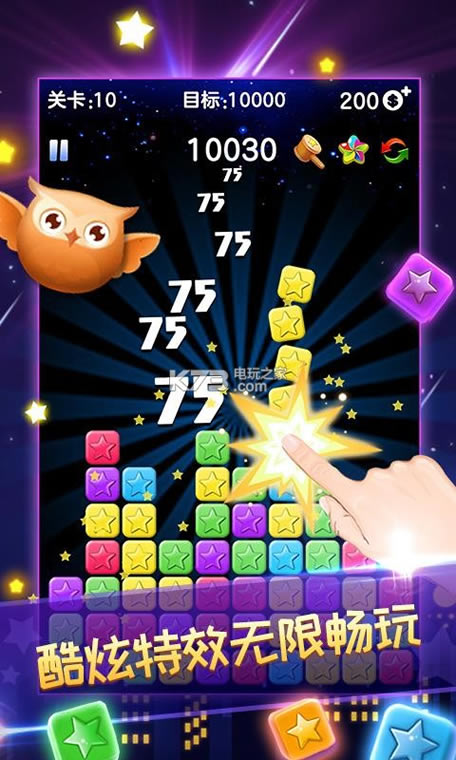 3、在没有限制的关卡挑战之中来完成你们的竞技任务, 保证你的手指可以成功消除星星。