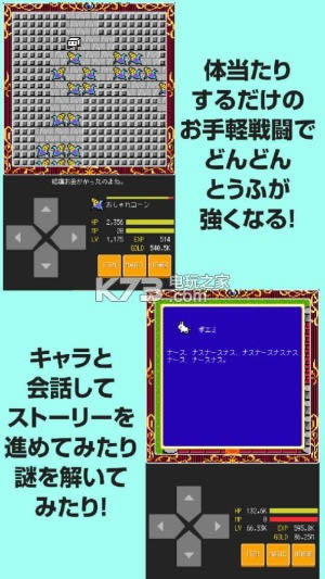 《豆腐幻想史3(とうふファンタジー3)》可爱的豆腐角色来快速的拯救王国的危机,利用更多的道具来完成,享受前所未有的王国冒险的拯救计划,参加更多的挑战,和更多的豆腐角色们来冒险。