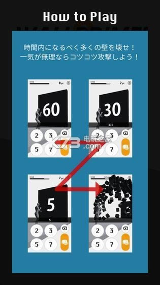 这是一款简单而令人兴奋的游戏,您可以在玩耍时变得更加强大。在本作中,玩家需快速计算画面出现的数字,并进行输入。在游戏中玩家需要用最快的速度来计算,并分解墙壁!