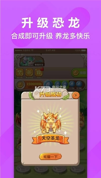 这款游戏对于玩法来说十分的简单,就是通过分红来赚钱,你合成的恐龙越多,赚钱也就越多的。
