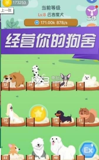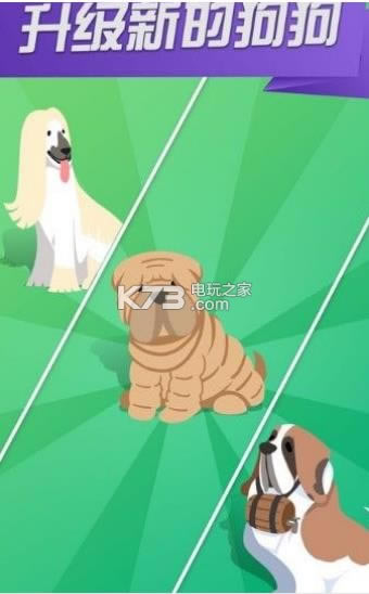 2、轻松有趣的放置玩法,只要把狗狗放在犬舍之中就可以进行升级了。