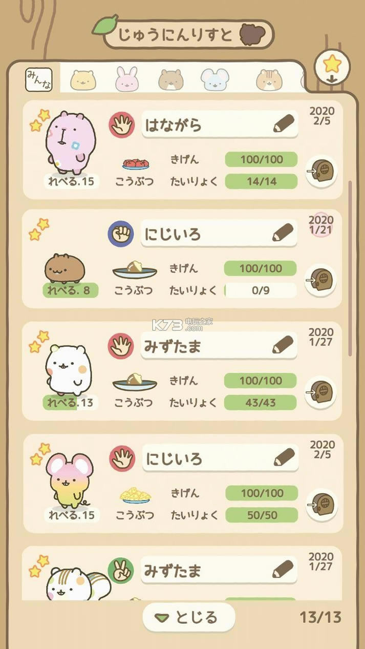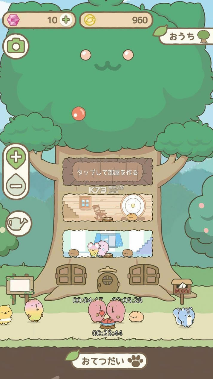 《啮齿宝宝与大树之家(げっし~ずと木のおうち)》人气可爱系列的新作游戏,培育这些啮齿来不断的成长,收集更多的宝宝们来入住,各种种类和慕言来袭,居住的大树也不断的增长,喂食更多的食物。