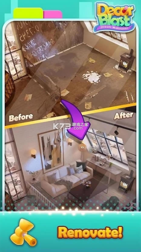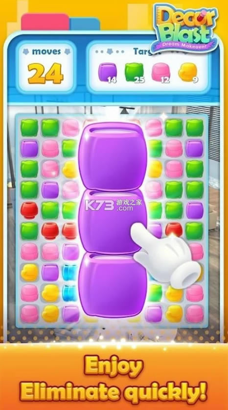装饰爆炸又名Decor Blast,玩家在游戏中将通过消除完成各种各样的消除闯关,获得装饰品改造房间,适合各类玩家游玩,喜欢这类游戏的玩家快来下载试试吧。