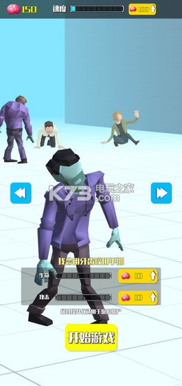 游戏玩法简单,只需要滑动屏幕,就能使你的僵尸军团像滑行的方向前行,此外为了获得胜利,抢占先机,你还可以提升移动速度!
