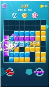形状色彩各异的方块,通过点击旋转方块,将旋转后的方块拖进棋盘中,使各个形状不同的方块能够填满棋盘中的任意一行或者列后消除得分。方块放进棋盘前可进行旋转,一旦方块放置到棋盘中将无法移动。如何合理放置方块获得更多消除分数,需要保持清晰的头脑,还要能预设方块旋转后形状,儘量消除更多,获得更高分数哦!