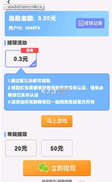 《一起消泡泡红包版》这是一款采用的是Q版可爱的游戏画风的一款趣味性的消除赚钱小游戏,里面将有非常多的不同颜色的泡泡,需要进行将其全部消除,超多的关卡进行设置,闯关成功的话将会送红包奖励。