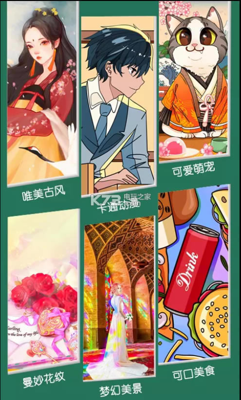 可爱漫画、美食、风景等数十个分类供您挑选,全新版