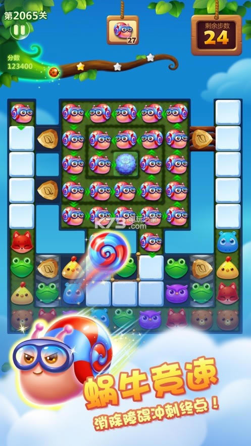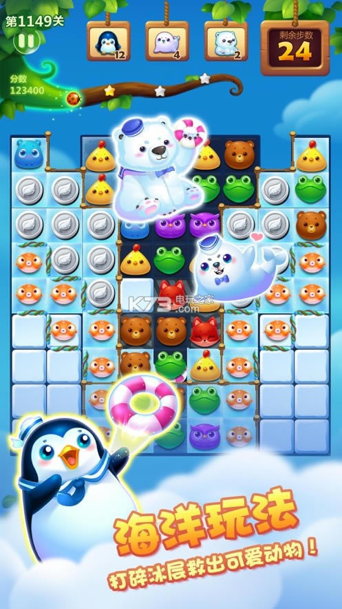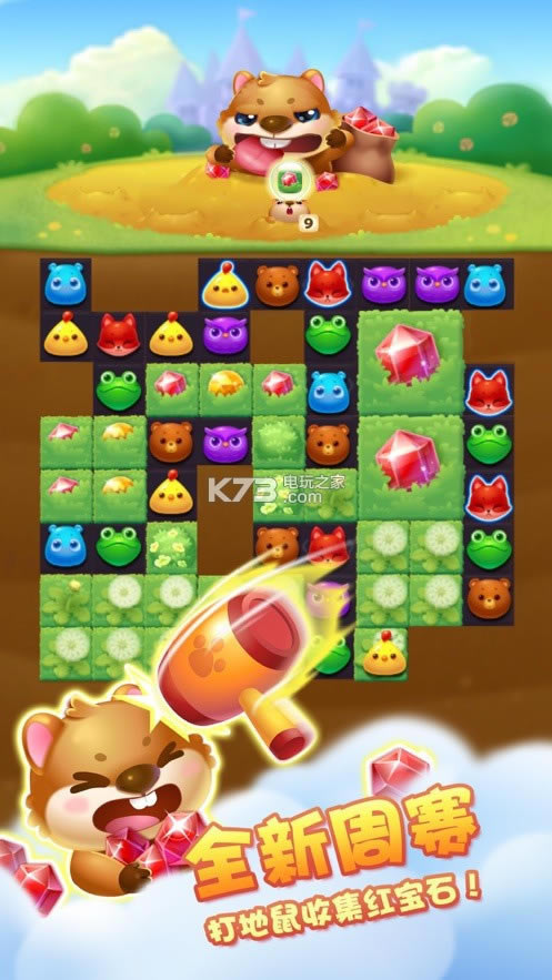 游戏的操作很简单,将两只小动物交换尽量形成消除去达到关卡目标
