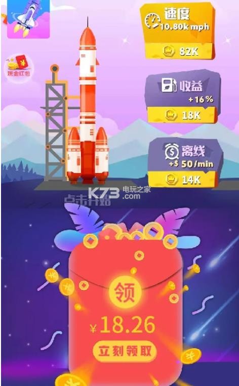 《火箭冲冲冲红包版》这是一款关于趣味性的一款休闲的赚钱类型的游戏,在游戏中将控制着火箭的速度与方向,控制火箭上升就可以轻松的进行赚钱啦,速度越快就可以赚的越多。