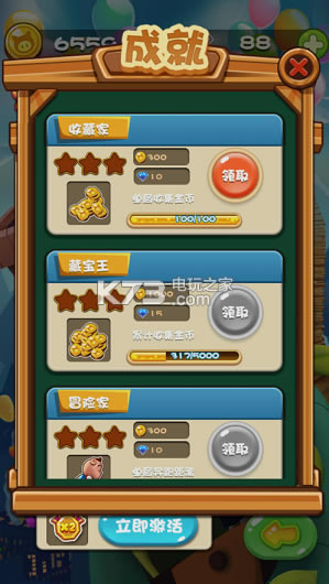 1.收集金币能完成三个阶段的星星荣誉,这个进度会在右边显示哦;