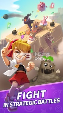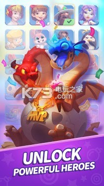 收集40多个英雄,丰富您的选择。享受具有特殊能力的强大英雄。随机或有计划地通过转换空间来获得游戏道具,转动立方体以调整战斗环境。进行战略战斗,击败其他两名玩家。