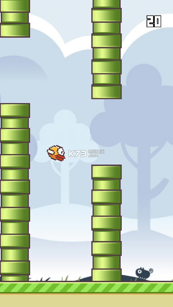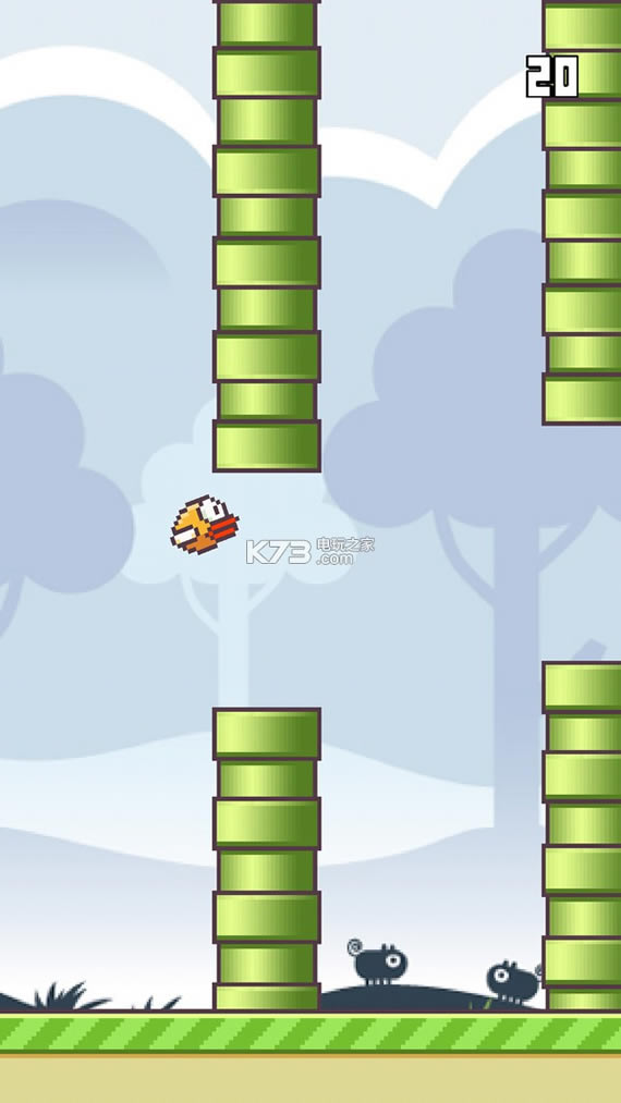 在飞行过程中要小心管道还不能掉落到地面。游戏的整个画风是像素卡通的