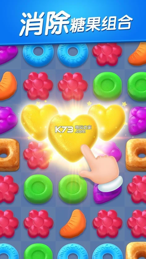 3、简单点击滑动操作将相同形状的糖果连接在一起,实现消除感受更多魔幻剧情。