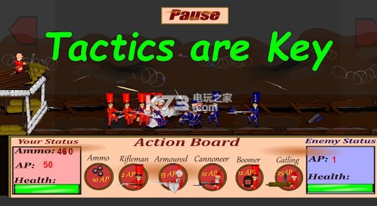 《红衣VS蓝衣(Red Coats VS Blue Coats)》是一个防御和进攻交替进行的游戏,一共是分为两个队伍的,玩家在这里要让自己的队伍取得胜利,不断的进行对抗对面的队伍,不要牺牲自己的领地.