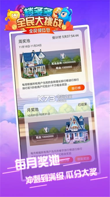 《楼多多全民大挑战》这是一款非常不错好玩的一款关于闯关赚钱的休闲游戏,只需要每天进行花一点时间进行闯关即可,到达一定的积分就可以轻松的赚钱,每个月都有奖金过分的活动,让你可以轻松的赚钱。