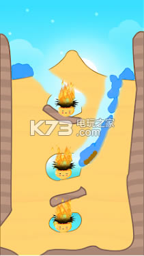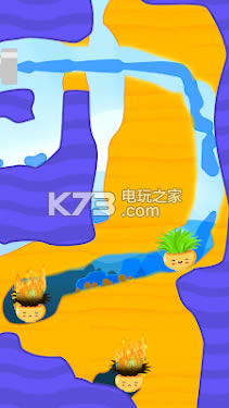 《Dig This Water》游戏内关卡众多,采用了物理类的玩法机制,你需要滑动手指向下进行挖掘,引导着水向下进行流动,将火全部扑灭即可。