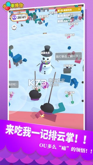 《小拳拳捶你》是款以卡通画风为主的多人在线战斗类的游戏,游戏的玩法十分简单,玩家可以自由选择各种魔性的角色来战斗,去将其他玩家淘汰掉,成为最后的胜利者吧。