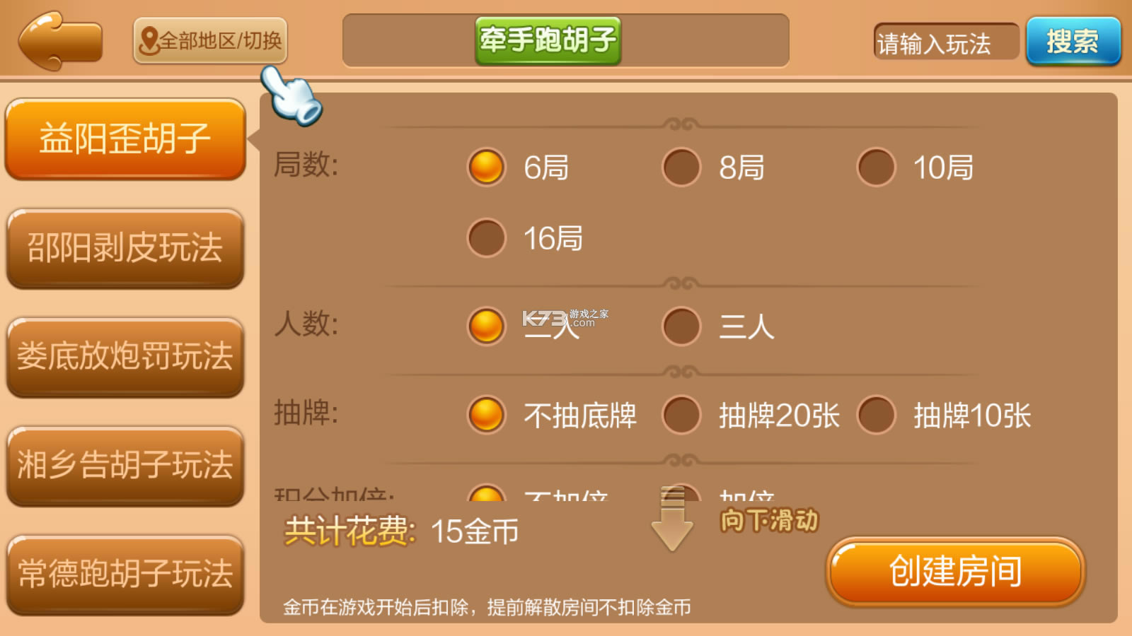 《牵手跑胡子免费》是一款好玩的棋牌游戏,在游戏中玩家可以输入房间号加入别人的房间,当然自己也是可以创建房间,为玩家提供了各种不同模式的玩法,参加各种活动,可以快速匹配。