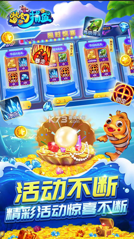 梦幻捕鱼游戏下载是一款经典街机式的捕鱼游戏,十年经典街机捕鱼,一炮秒鱼,轻松娱乐,玩家会在电玩城里享受在海底与鱼儿嬉戏的全过程,还原儿时游戏厅的经典街机捕鱼风格,波澜壮阔的绚丽画面,当然游戏当中不只有那些经典的游戏环节,还加入了许多全新的玩法模式 ,游戏里众多不同种类的鱼儿在等待与你的见面,更有一定等级大BOSS静候出场,丰富玩法让你流连忘返,还有“小玛丽”畅享游戏厅爆机体验让你挑战,在“对战房”与好友携手排行上王者,参与“屠龙计划”团战送福利哦,更多惊喜等你来。