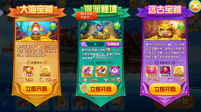 《梦幻捕鱼大海宝藏版本》能够展开更加有趣的捕鱼副本了,可以开启一个畅玩捕鱼的游戏世界,更多的宝藏提供,更多的竞技捕鱼,可以来参与一下了。这里有更爽的棋牌,这里有更火热的捕鱼模式,快快参与一下吧!