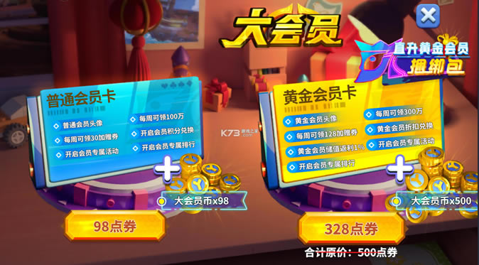 首次充值6元即可升级vip1福利,普通会员卡需要98点券黄金会员卡需要328点券