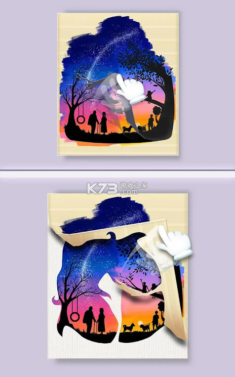 你可曾想过成为艺术大师,画出一幅史诗般的杰作时会是什么感觉?现在就能轻松体验!创作出水上浪漫图画,绘出动物们对月啼嗥。海量图案素材供你创作,每一张都色彩缤纷,别具风格。你可以先在画板上涂上颜色,撒上亮晶晶的金粉,贴上贴纸;撕下遮盖后,就能拥有一张漂亮的剪影画!就是如此简单!