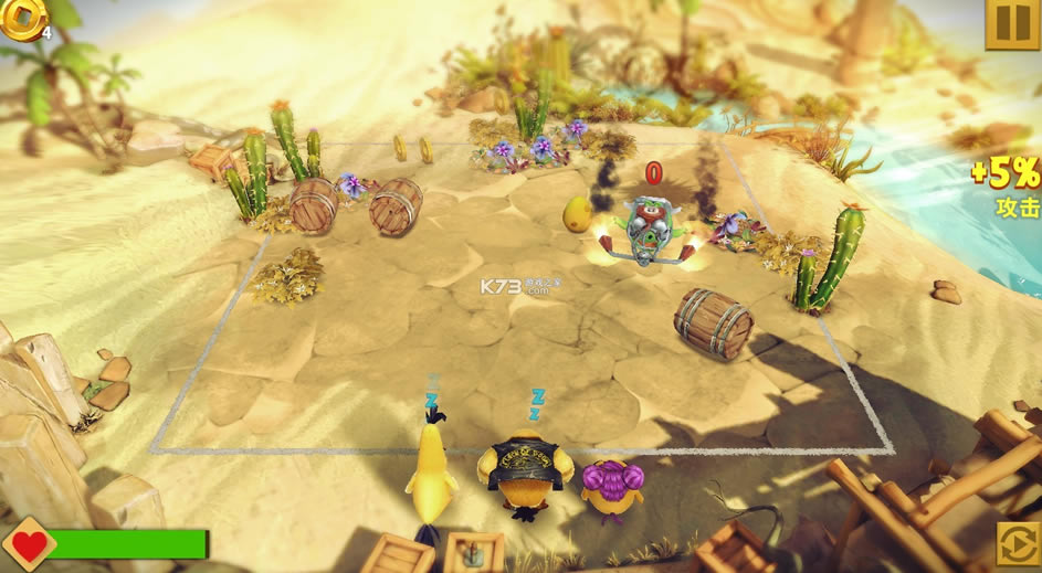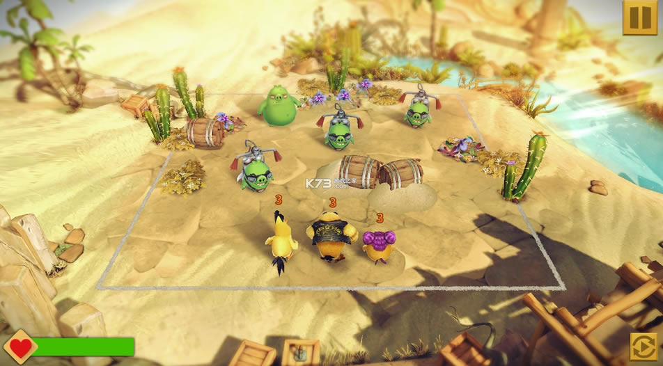 一款休闲弹球类游戏。游戏中玩家要帮助小鸟们对抗可恶的绿猪们,绿猪们会聚集在一个平台之上,而玩家所要做的就是通过拖动的方式从平台外将小鸟们发射进平台中,当小鸟撞击绿猪后将会对其产生伤害,小鸟碰到平台边缘的时候会进行反弹,利用这样的操作玩家就可以将所有的猪猪消灭掉。