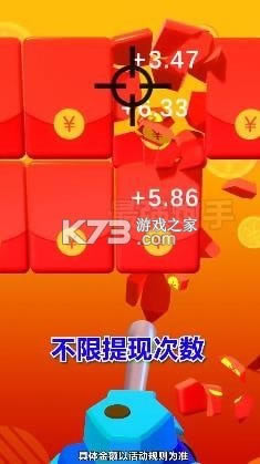 最强炮手红包版是能赚钱的休闲小游戏。玩家在这里只要操控炮台完成挑战任务就能领取红包,红包还能兑换到微信,调整你的炮台,完成任务,赚取超多红包。