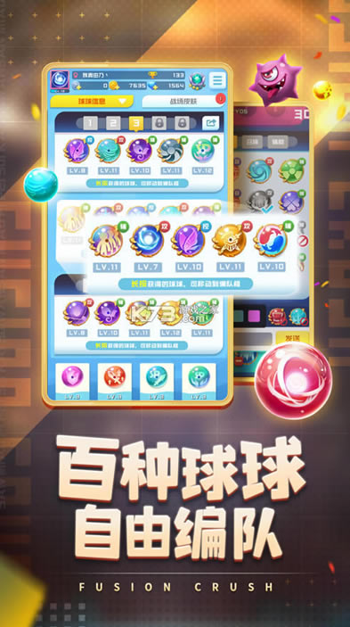 超过50种球球由您选择,重复球球还可升级,利用您现有的球球组合搭配击败您的对手。
