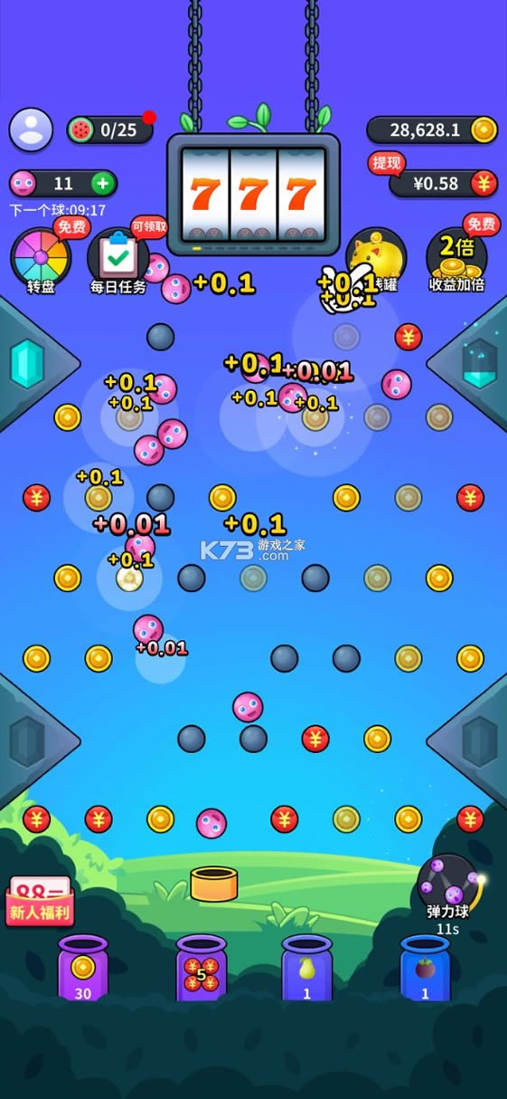 《弹球大赢家》红包游戏可以来下载了,是一款欢乐球球的手机游戏,天降小球就能够获得更多的红包,小球弹一弹得更多红包,直接给你到账红包到微信了,很方便,很轻巧的一款小游戏。