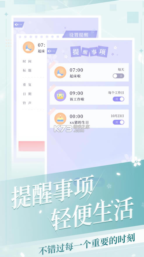 快速记录提醒事项,重要的事情不要忘记,把今天打造成愉快的时光~