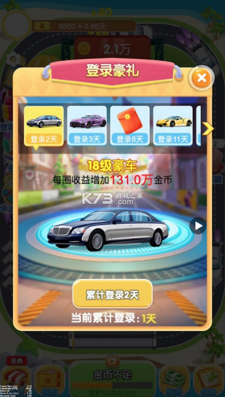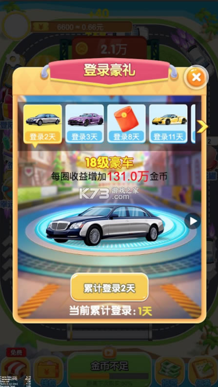 主要赚钱玩法是合成汽车,就是用金币购买汽车;