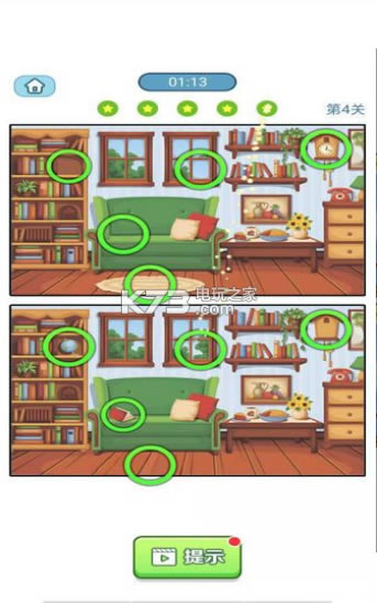 1、每一个关卡都是两个相同的图片,而里面不相同的地方有几个就看关卡给的任务了。