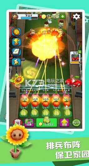 3、轻松的放置性的玩法,让玩家们轻松的组合植物,给玩家们最轻松的冒险游戏。