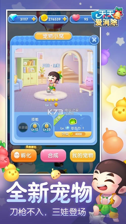 百变造型,总有一只宠物萌化你!更有自带超强技能的月亮宠物,助力你的爱消除之旅!