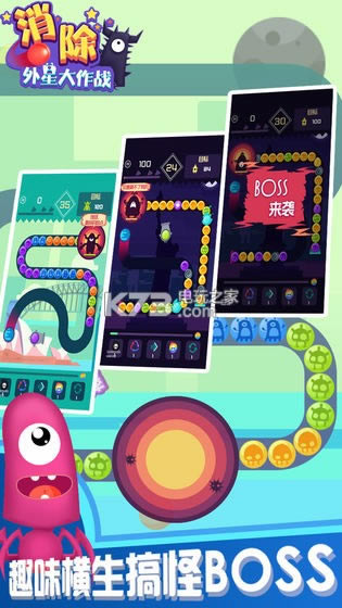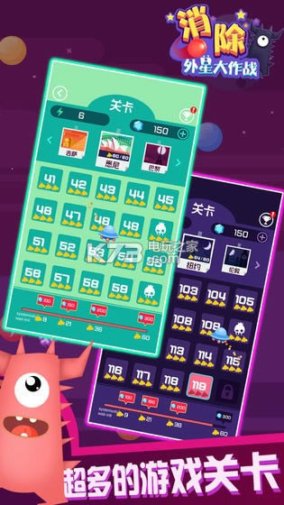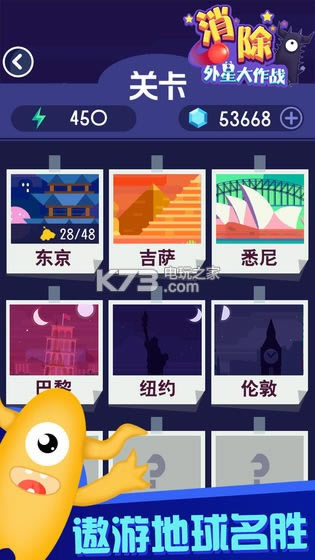 《消除外星大作战》新颖的 消除闯关游戏,这里有丰富多样的武器道具帮助你消除,不断的解锁新的关卡,每一个关卡都是全球的风景名胜,一边玩游戏一边欣赏美景。