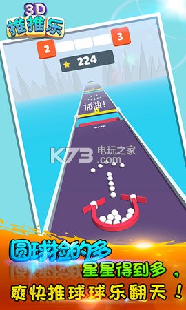 《3D推推乐》火爆“网红”游戏全新来袭和你一起好嗨哟。这是一款确认过眼神的以U型铁块为载体,控制白色小球前进的趣味益智游戏,游戏中玩家需要在每个小关卡都需要推到足够的小球才能通关,如果小球不足够,则游戏失败。每局游戏都有一次复活的机会和各种各样的道具,合理使用道具可获得更高分数噢!