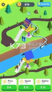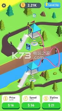 以高空滑索为主题的轻松娱乐向游戏,玩家并不需要真正的去手动操作。只需要好好的管理一块水上高空滑索,顺利的开展自己的趣味运动就可以了。听起来似乎很简单,而事实上,它就是很简单。