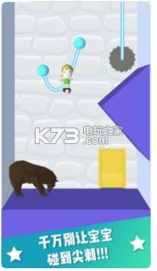《救救孩子吧》卡通的游戏风格,简单上手适合所有人,主人公是一个被帮助的小宝宝,你需要将小宝宝安全的带回到地面上,类似于救救宝宝的玩法,只有一次机会,需要你把握好机会。