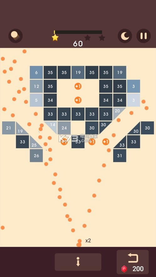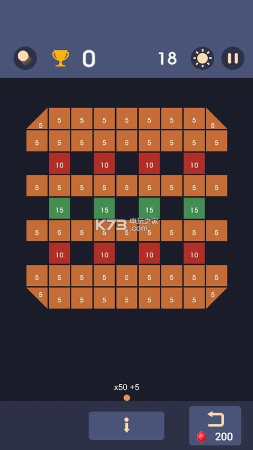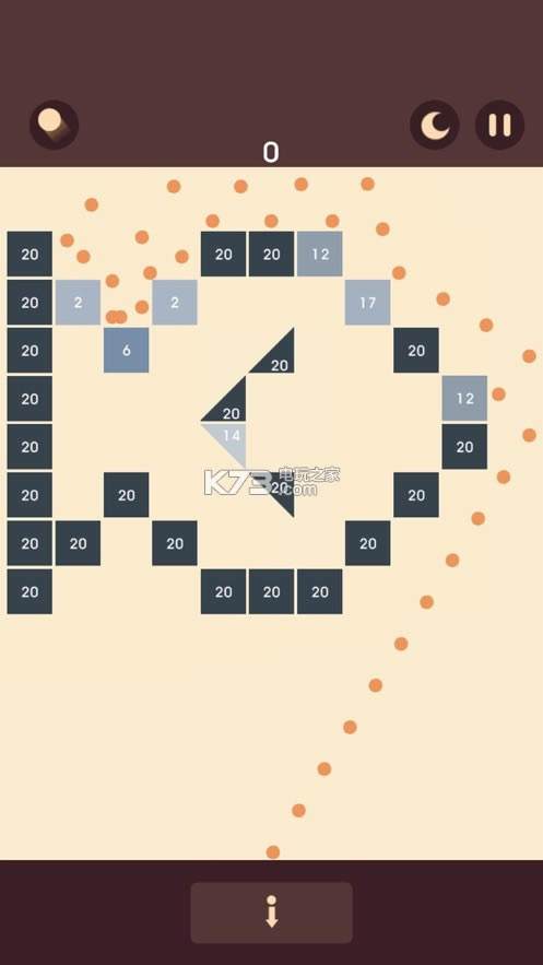 《超魔性打砖块》是款很是魔性的一款来进行砖块挑战的游戏,一款可以轻松的进行打砖块的手游,小心进行球球的发射,准确的一个角度很关键,这样才能够完全打破砖块,完成关卡。