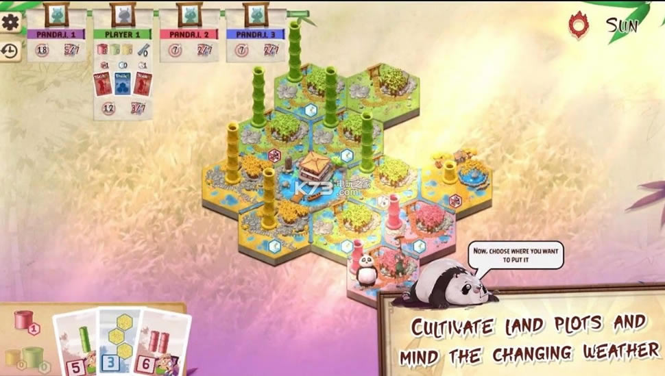 为了击败你的对手,改善你的情节:建立灌溉渠道或增加肥料,以加速你的竹子的生长...并祈祷天气有利!